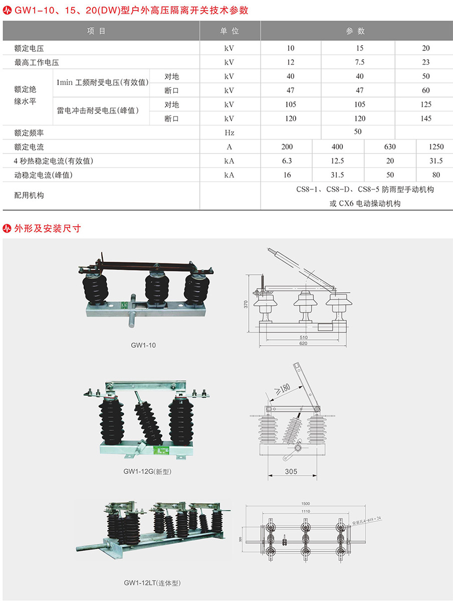 GW1-10(DDW)-630~1250分體型/連體型戶外高壓隔離開關(guān)
