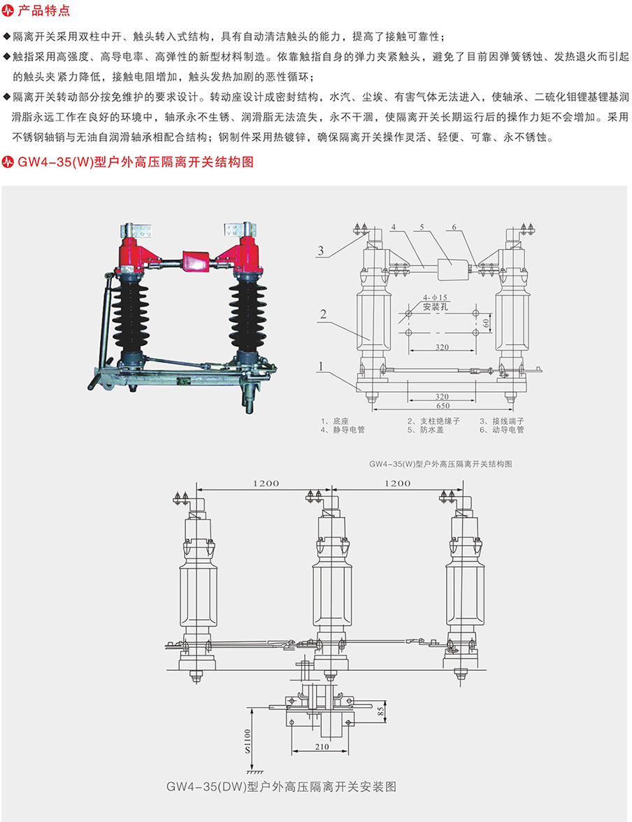 GW5-35/66/110(DDW)-630~3150A戶外高壓隔離開關(guān)
