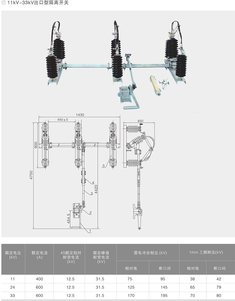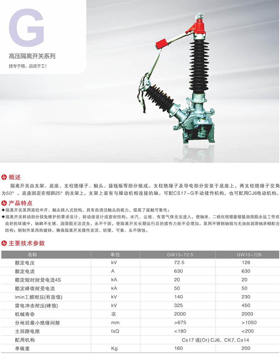 GW13-40.5/72.5/126kV中性點(diǎn)高壓隔離開關(guān)