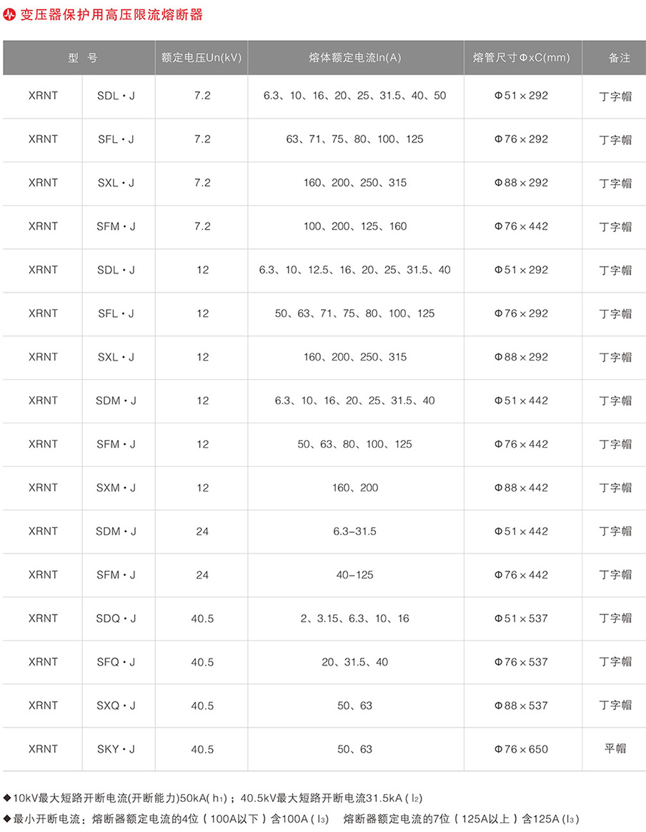 XRNT變壓器保護用離壓限流熔斷器
