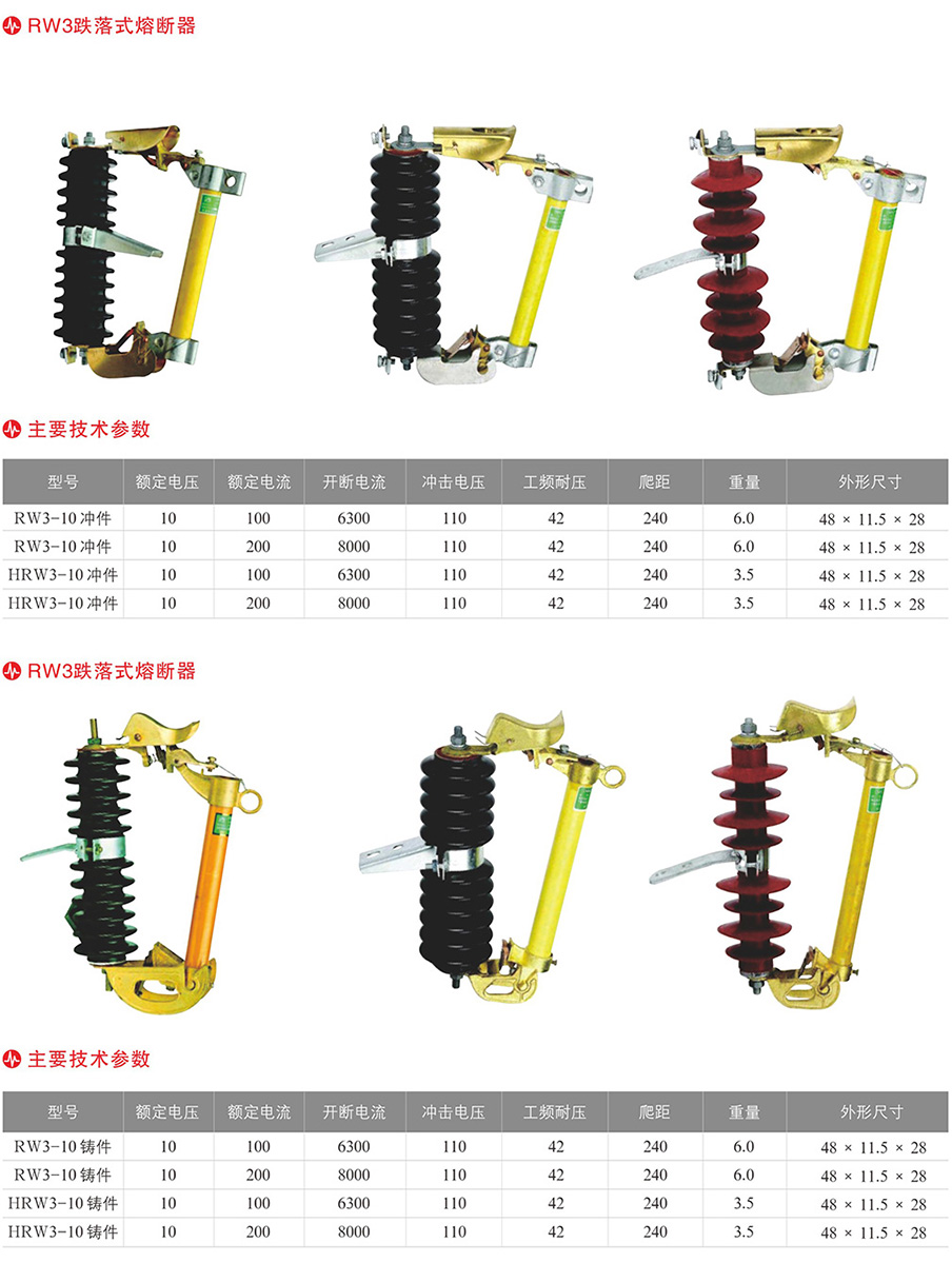 跌落式熔斷器及拉負(fù)荷跌落式熔斷器是戶外高壓保護電器。它裝置在配電變壓器高壓側(cè)或配電線支干線路上、用作變壓器和線路的短路、過載保護及分、合負(fù)荷電流。跌落式熔斷器由絕緣支架和熔絲管二部分組成,靜觸頭安裝在絕緣支架兩端,動觸頭安裝在熔絲管兩端,熔絲管由內(nèi)層的消弧管和外層的酚醛紙管或環(huán)氧玻璃布管組成。拉負(fù)荷跌落式熔斷器增強彈性輔助觸頭及滅弧罩,用以分,合負(fù)荷電流。