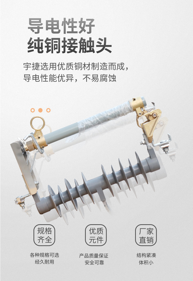 戶外跌落式熔斷器適用于35kv及以下電壓頻率50Hz電力系統(tǒng)中,作輸電線路、電力變壓器過載和短路保護(hù),分合額定負(fù)荷電流只用,機(jī)械壽命≥2000次。