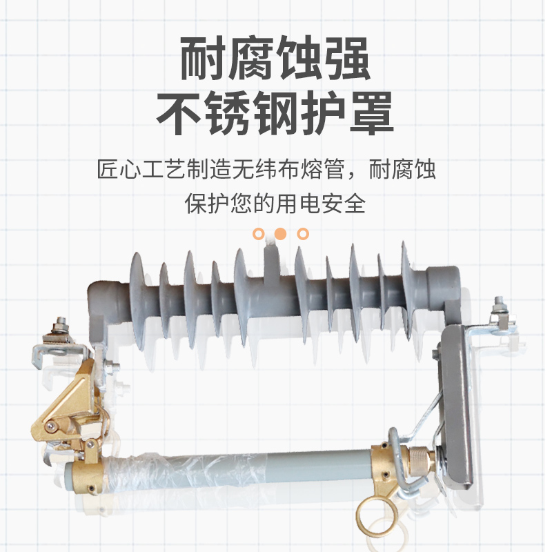 跌落式熔斷器及拉負(fù)荷跌落式熔斷器是戶外高壓保護(hù)電器。它裝置在配電變壓器高壓側(cè)或配電線支干線路上、用作變壓器和線路的短路、過載保護(hù)及分、合負(fù)荷電流。跌落式熔斷器由絕緣支架和熔絲管二部分組成,靜觸頭安裝在絕緣支架兩端,動觸頭安裝在熔絲管兩端,熔絲管由內(nèi)層的消弧管和外層的酚醛紙管或環(huán)氧玻璃布管組成。拉負(fù)荷跌落式熔斷器增強(qiáng)彈性輔助觸頭及滅弧罩,用以分,合負(fù)荷電流。