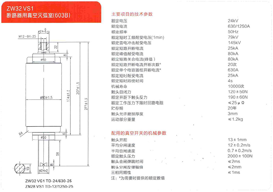 ZW32 VS1斷路器用真空滅弧室(603B)