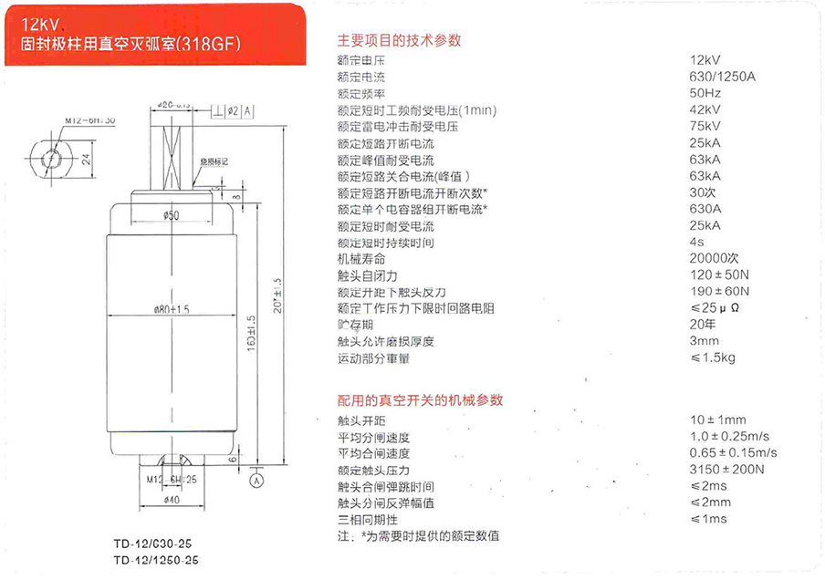 12KV固封極柱用真空滅弧室(318GF)