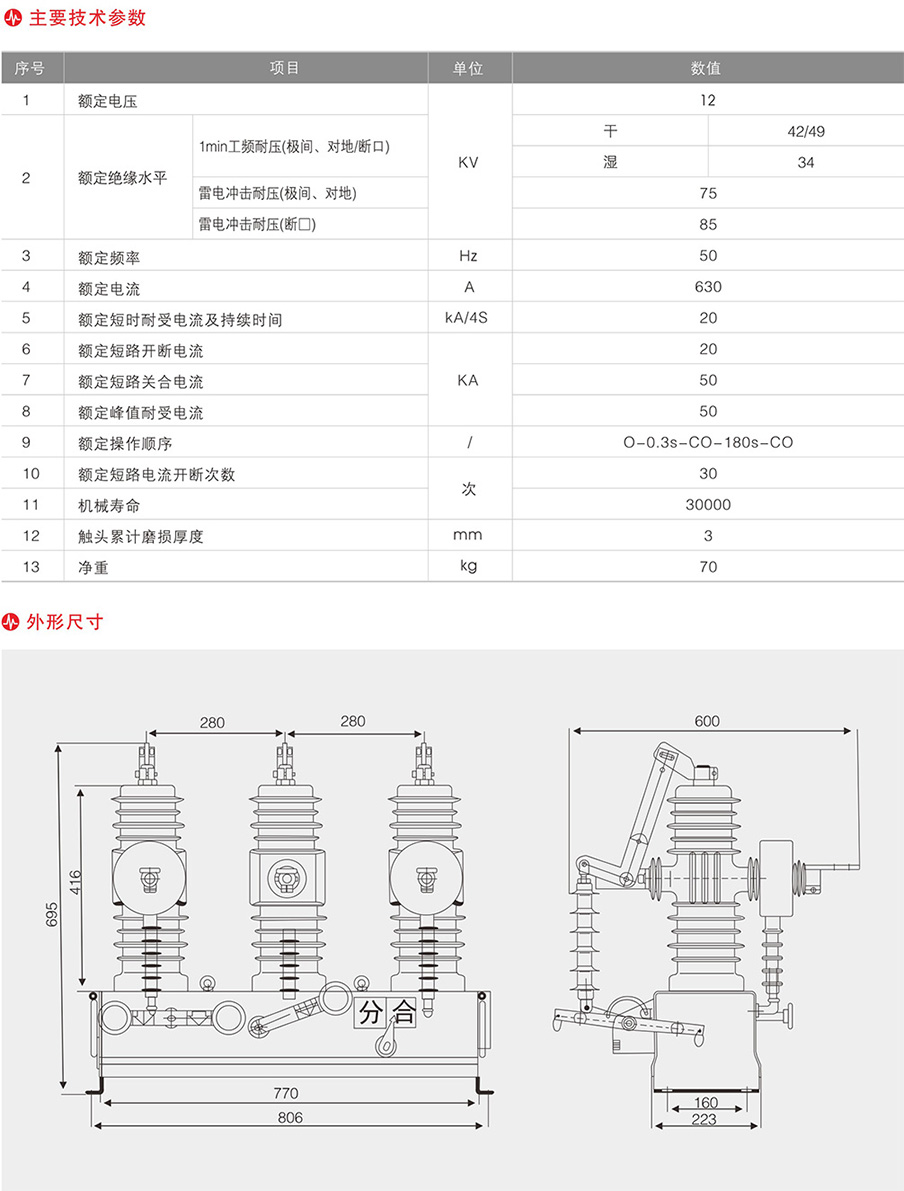 FZW32-12/T630-20型戶外高壓隔離真空負(fù)荷開關(guān)