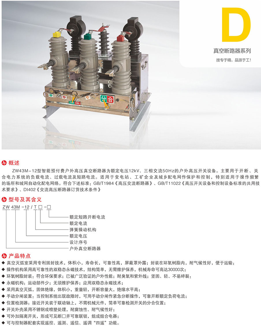 ZW43M-12型智能預(yù)付費(fèi)戶外高壓真空斷路器