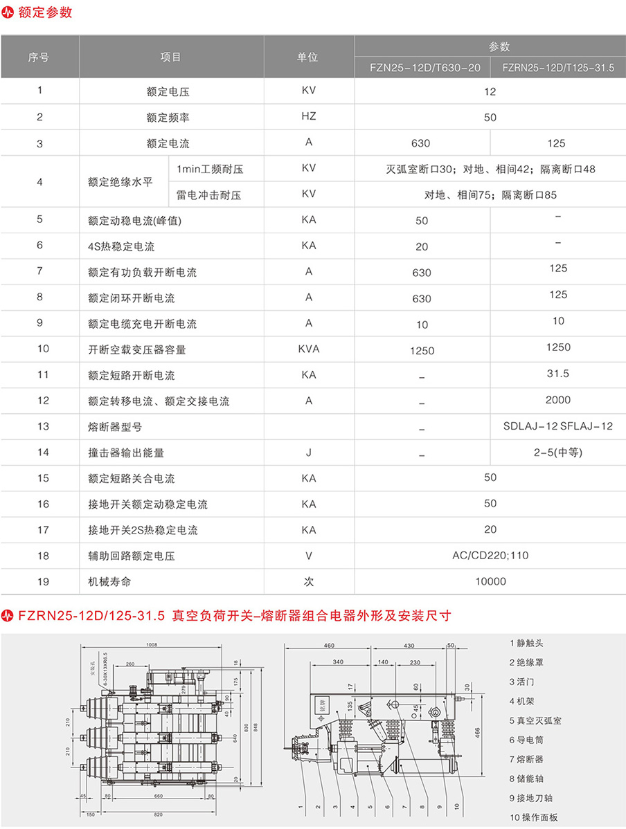 ZFN21 -12D/T630-20、ZFN21-12DR/T125-31.5型高壓真空負(fù)荷開關(guān)及組合電器